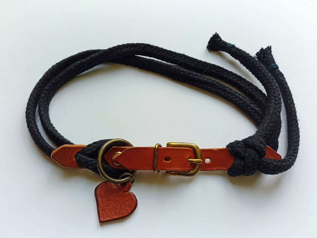 –bei der Gurtherstellung fallen Schnurreste an. Diese werden zu Hundehalsbändern verarbeitet. Mir ist es wichtig, keine Ressourcen zu verschwenden–
